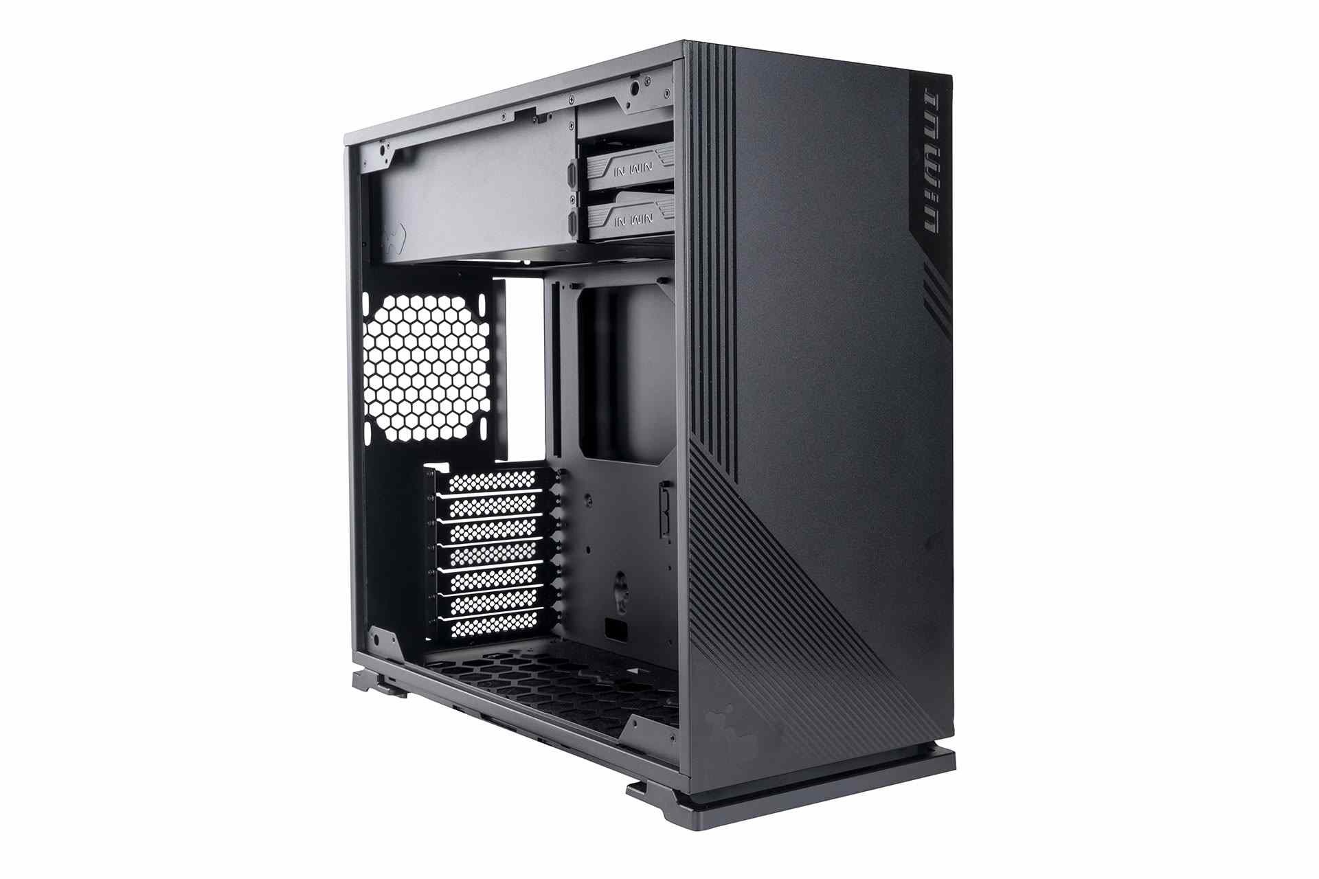 IN WIN skříň 103 Black, Midi Tower, průhledný bok, bez zdroje