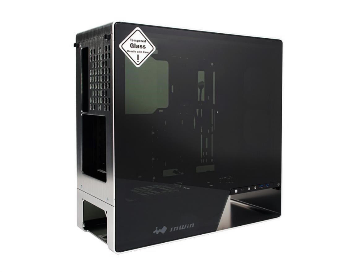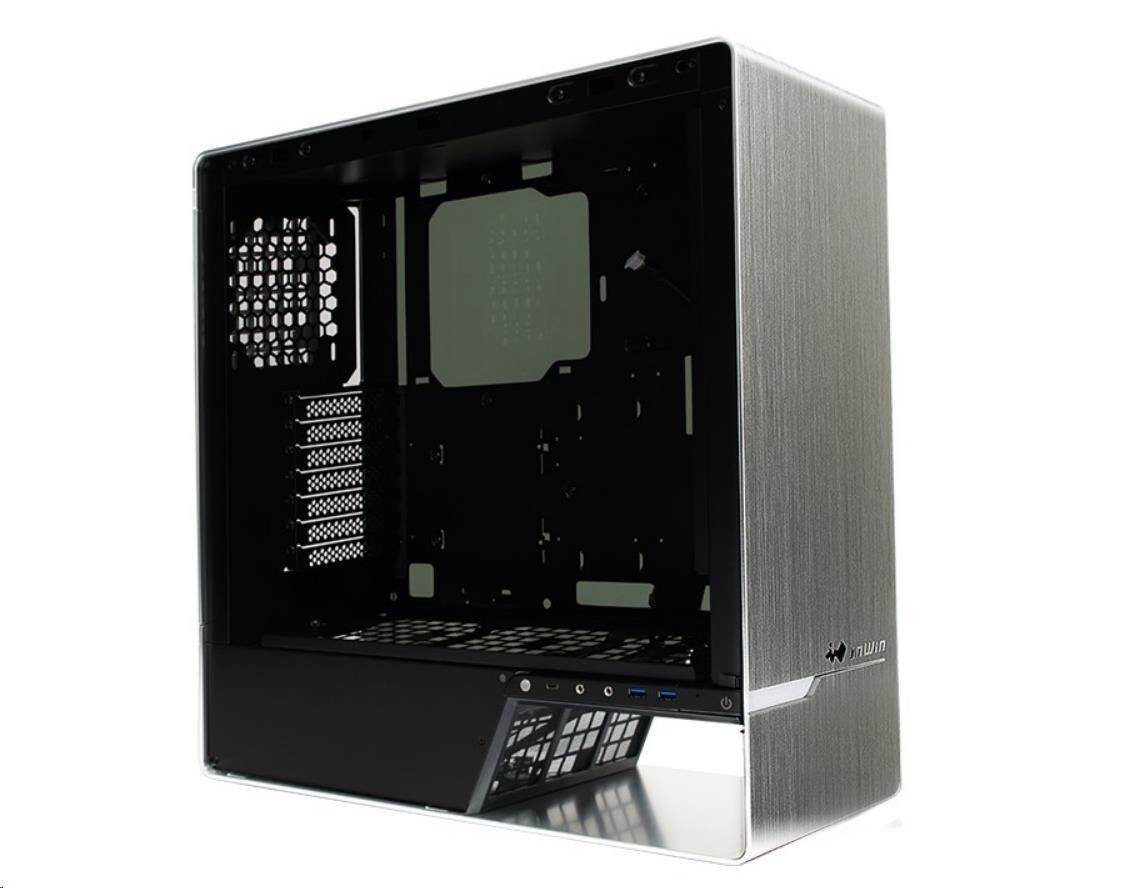 IN WIN skříň 905, Mid Tower, průhledný bok, bez zdroje, silver