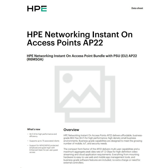 HPE Networking Instant On Access Point Bundle with PSU (EU) AP22 (Includes 12V Power Adapter with EU Power Plug) R6M50A