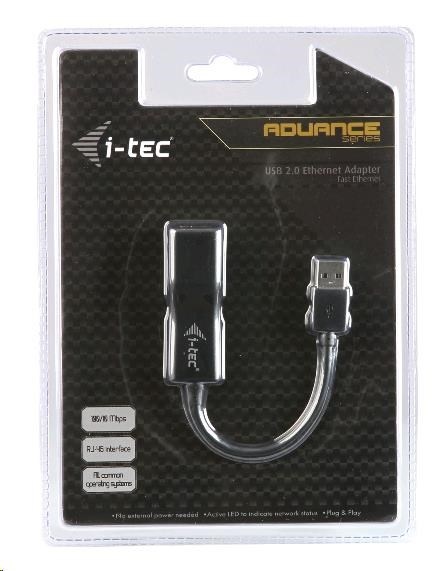 i-Tec USB 2.0 Advance 10/100 Fast Ethernet LAN Síťový adaptér USB 2.0 na RJ45, LED, pro tablety, ultrabooky, Windows, Android, Linux, Mac