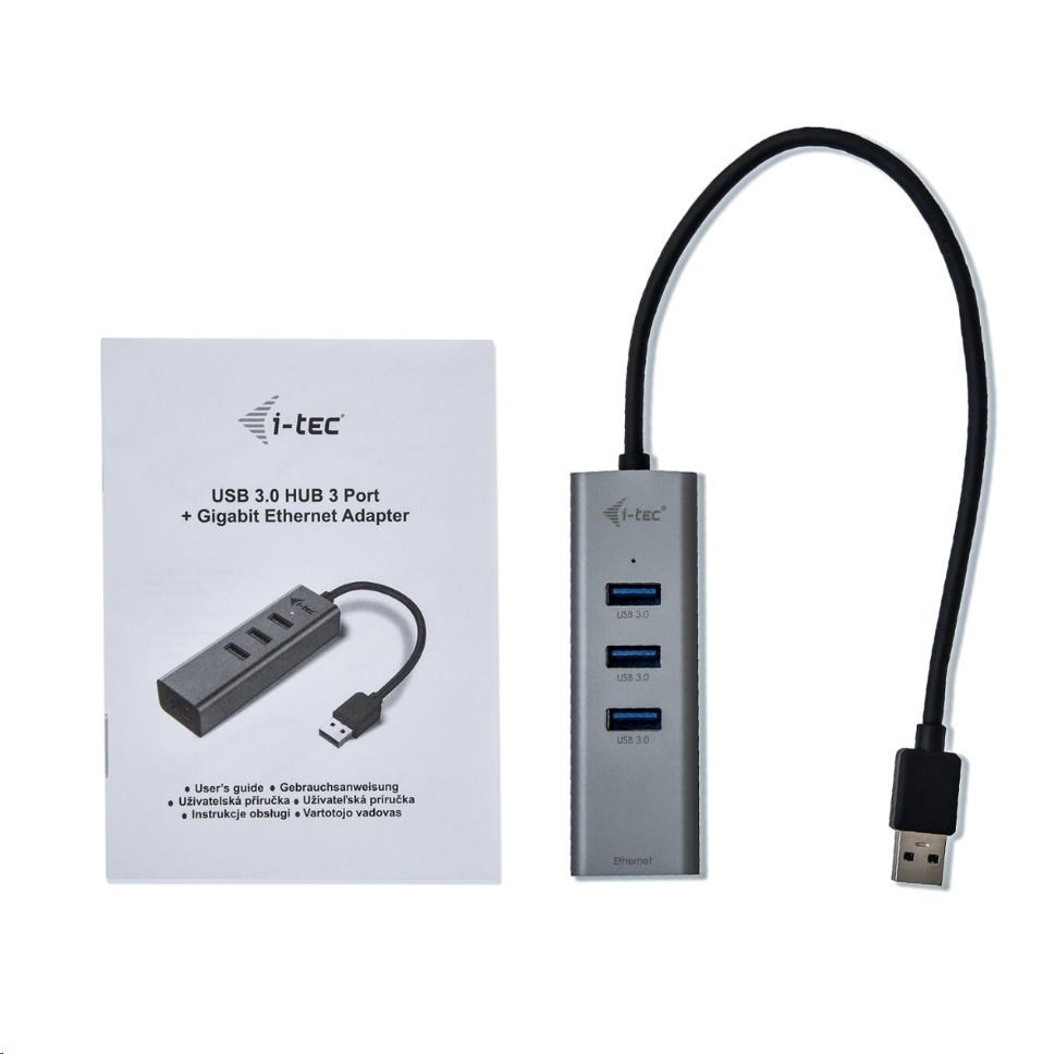 • i-tec USB 3.0 Metal HUB 3 Port + Gigabit Ethernet Adapter s kabelem (28 cm)