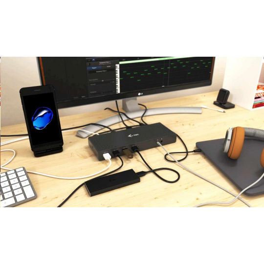 i-tec USB 3.0 / USB-C 5K Univerzální dualní dokovací stanice, 2x 4K 60Hz video, 2x HDMI, 2x Display Port, 1x Ethernet, 6x USB 3.0, 1x Audio/Mikrofon Jack, přepínač ON/OFF, podpora Kensington Lock, pro notebook, tablet, Windows, Mac OS, Linux, Android, kompatibilní s Thunderbolt 3
