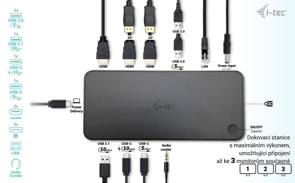i-tec USB 3.0 / USB-C / Thunderbolt, 3x 4K Docking Station + Power Delivery 100W