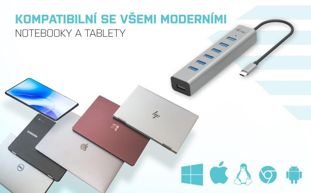 - HUB podporuje všechny běžné současné operační systémy (Windows, macOS, Linux, Android, Chrome OS, iPadOS)