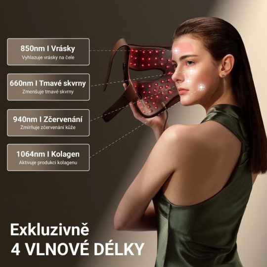 Maska využívá jedinečnou foto termální technologii. 140 laserových světelných zdrojů vytváří úzký koncentrovaný paprsek světla, který proniká hluboko do pokožky a dosahuje až šestinásobně vyšší účinnosti oproti běžným LED maskám. Kombinace čtyř druhů laserových světlených zdrojů – 660 nm, 850 nm, 940 nm a 1064 nm – působí na různé vrstvy pleti a cílí na konkrétní problémy, jako jsou vrásky, ztráta jasu a pružnosti nebo pigmentace pleti. Díky této technologii získáváte možnost dopřát si ošetření srovnatelné s klinickým laserem přímo doma a jako první maska nabízí ošetření vlnovou délkou 1064nm doma, bez nutnosti pravidelných a nákladných návštěv salonů.