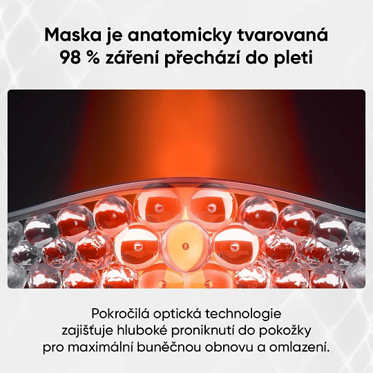 - Čtyři klinicky ověřené vlnové délky pro komplexní péči o pleť: modrá, jantarová, červená a blízká infračervená.