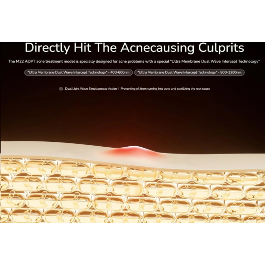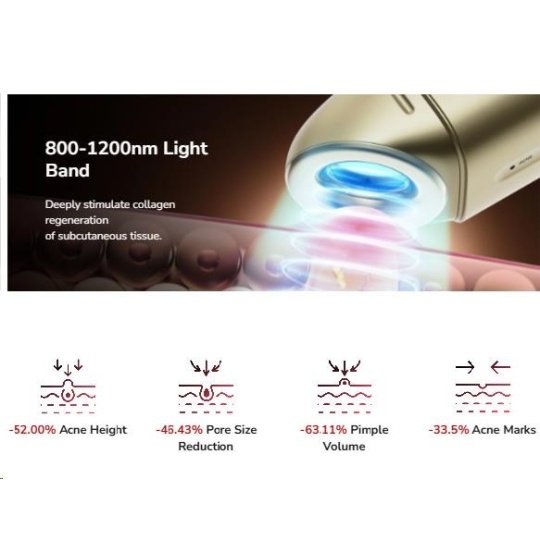• Dvojitá rázová vlna světla: Kombinuje dvě pásma (400-600nm & 800-1200nm) pro komplexní účinek – ničení bakterií a regulaci mazu.