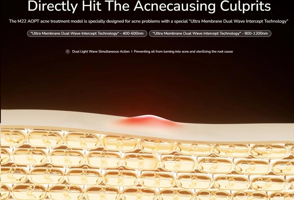 • Dvojitá rázová vlna světla: Kombinuje dvě pásma (400-600nm & 800-1200nm) pro komplexní účinek – ničení bakterií a regulaci mazu.