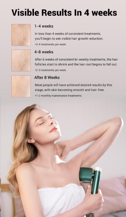 - Přesné cílení na každou partii: 6 specializovaných režimů pro obličej, ruce, nohy, podpaží a oblast bikin s 6 úrovněmi intenzity.