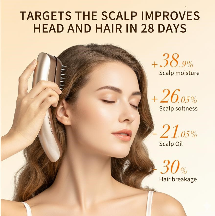 - Péče o vlasy a pokožku hlavy: Speciální hřebenový nástavec a sérum zpevňují pokožku hlavy, omlazují vlasové folikuly a bojují proti vypadávání vlasů.