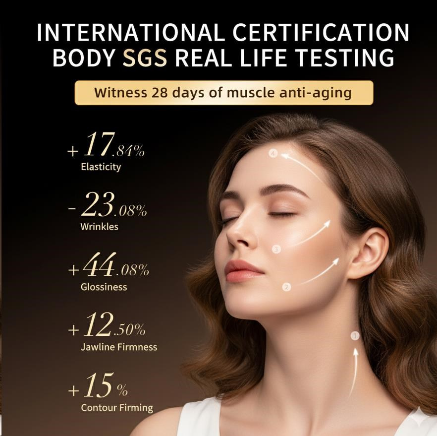 - Okamžitě viditelný V-lift: Zpevňuje povolené svaly, které jsou hlavní příčinou stárnutí pleti, a viditelně vytvaruje kontury čelisti.