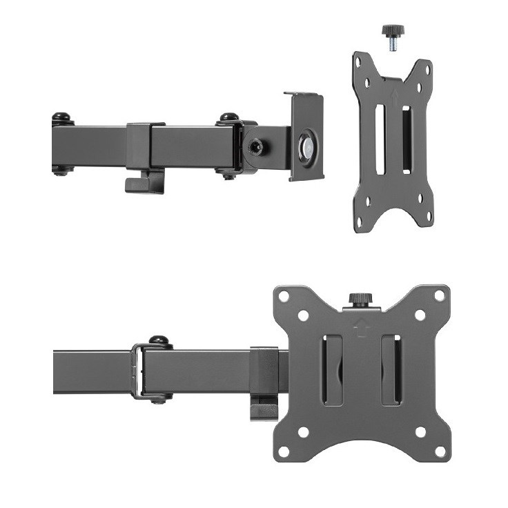 Kancelářský držák na monitory Fiber Mounts M8C83 Stolní držák na monitory 15-32", polohovatelný, stabilní, spolehlivý, VESA 75x75 a 100x100, nosnost 8kg Stolní držák na monitory do kanceláří a pracoven na monitory 15-32". Držák umožňuje snadné polohování monitoru do potřebné pozice: otáčení do stran +360° / -360°, naklápění +45° / -45°, vzdálenost monitoru od nosníku (trubky) 83-430mm, výškové polohování po celé délce nosníku (trubky) max. 300mm. Držák podporuje VESA 75x75 a 100x100. Držák můžete uchytit na okraj stolu nebo na stolovou desku (průchodka nebo vyvrtat 1 otvor 10mm). Barevné provedení černé, záruka 5 let. Stolní držák na monitory, otočný, sklopný, výsuvný a výškově polohovatelný Fiber Mounts M8C83 Technické údaje: nosnost 8kg podporuje VESA standardy 75x75 a 100x100 na monitory s úhlopříčkou 15" až 32" otáčení do stran +/- 360° naklápění +/- 45° vysouvání od nosníku 83mm až 430mm výškové polohování 300mm kvalitní pevná konstrukce úchytky na kabeláž montáž na okraj stolu nebo na stolovou desku barva černá záruka 5 let Kancelářský držák na monitor Fiber Mounts M8C83 Držák na monitor Fiber Mounts M8C83 podporuje VESA standardy: VESA 75x75 VESA 100x100 Držáky Fiber Mounts M8C83 se stali populární díky výbornému poměru kvality a příznivé ceny. Držák umožňuje snadné polohování monitoru v širokém spektru. Držáky se osvědčili v kancelářích, učebnách, ale i domácnostech..