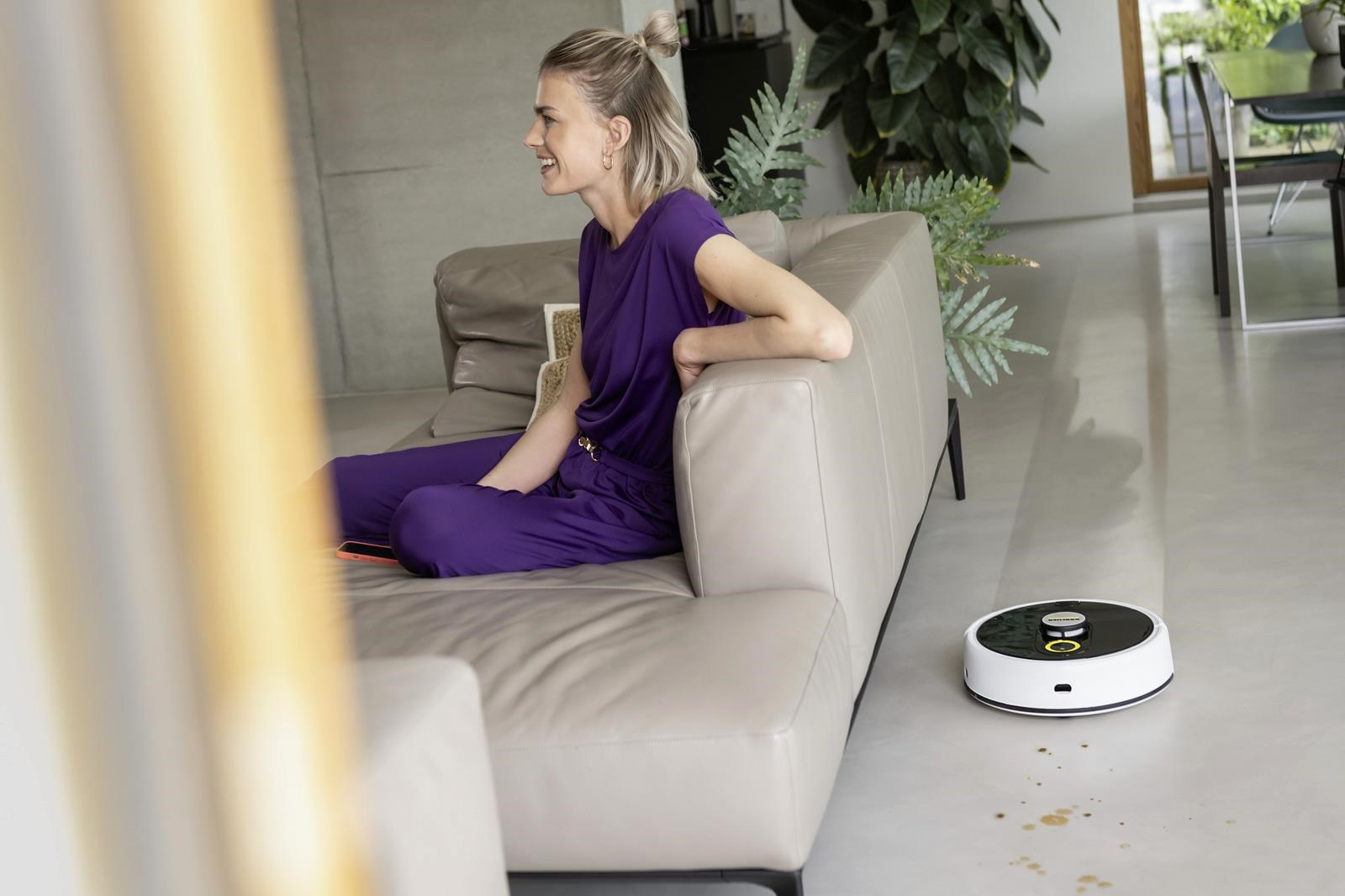 Podlahy vyčistíte stisknutím jediného tlačítka: chytrá robotická myčka RCF 3 se od nynějška postará o jinak únavné a časově náročné vytírání tvrdých podlah. Díky osvědčené technologii válce odstraňuje RCF 3 nejen odolnou špínu nebo zaschlé tekutiny, ale také sbírá prach a drobné nečistoty. Přitom automaticky rozpozná koberce a obratně se jim vyhne. RCF 3 má dvě nádrže, které mu umožňují neustále zvlhčovat čisticí válec čistou vodou a zvlášť sbírat nečistoty do nádrže na špinavou vodu. Také lehké, suché nečistoty se snadno zachytí a dopraví do nádrže na špinavou vodu. Pomocí praktického ovládání aplikace lze nastavit různé režimy čištění. Robota tak lze velmi flexibilně přizpůsobit nejrůznějším potřebám a požadavkům. Pro úklid se robot pohodlně spouští prostřednictvím aplikace nebo stisknutím tlačítka na zařízení. Pokud RCF 3 potřebuje pomoc, sdělí vám to hlasovým výstupem nebo prostřednictvím aplikace. Je doporučeno umístit nabíjecí stanici na povrch, který není vyroben ze dřeva, aby se předešlo riziku poškození dřevěné podlahy vlhkým válcem při parkování robota ve stanici po dokončení čištění.