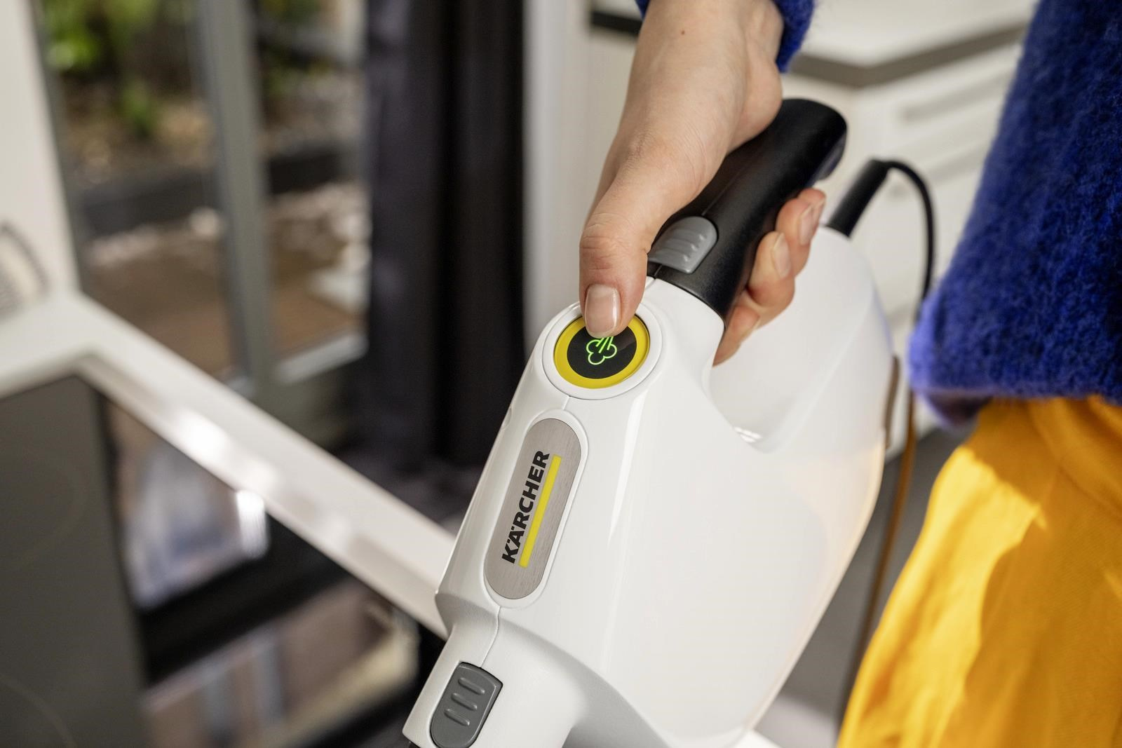 Kompaktní parní mop SC 1 Multi & Up čistí bez použití chemikálií a lze jej v mžiku použít k hloubkovému úklidu celého domu, a to buď jako multifunkční ruční parní čistič, nebo jako všestranný parní mop 3 v 1 díky sadě velkých podlahových hubic EasyFix, která je součástí balení. Pracuje ve třech různých polohách zařízení - horní, střední a dolní - a dokonale se přizpůsobí individuálním požadavkům. Důkladné čištění parním čističem Kärcher odstraní z tvrdých povrchů až 99,999 % virů* a 99,99 % všech běžných domácích bakterií**. Díky kompaktnímu a praktickému designu se přístroj pohodlně používá a snadno se skladuje i v těch nejmenších prostorách. SC 1 Multi & Up je připraven k použití během 30 sekund a díky odnímatelné nádržce na vodu se snadno doplňuje - to znamená, že nemusíte dlouho čekat ani přerušovat práci. Vyměnitelná odvápňovací kazeta zajišťuje automatické odstraňování vodního kamene, čímž je životnost výrobku pětkrát delší. Světelný LED displej s ovládacím panelem umožňuje jednoduché a bezproblémové ovládání. Na displeji jsou vždy zobrazeny různé režimy, jako je ohřev, připravenost k použití, parní režim a termín výměny patrony.