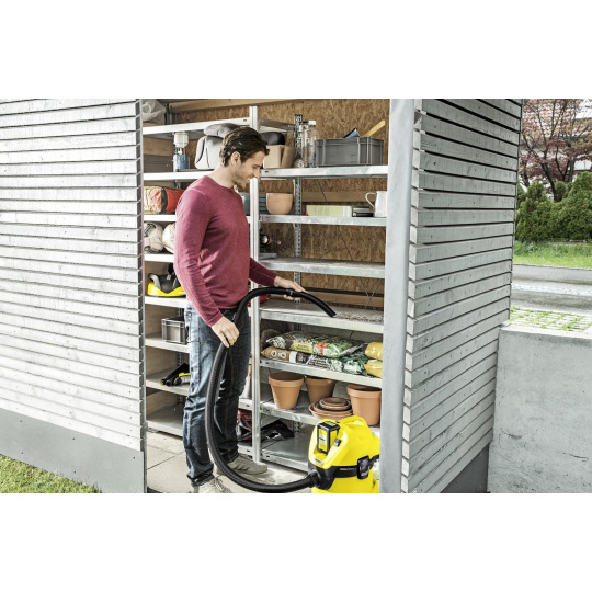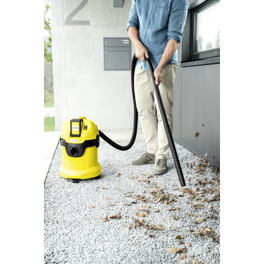 Aku vysavač WD 3 Battery Set zvládá suché i mokré vysávání i bez přívodu elektřiny. Navíc ho využijete i jako fukar na listí a další nečistoty. Energii zajišťuje 36V baterie Kärcher, která na praktickém LCD displeji díky Real Time Technology ukazuje svou zbývající kapacitu v minutách – provozní doba na jedno nabití je 15 minut. Baterie je navíc kompatibilní a využijete ji také v dalších aku strojích Kärcher platformy 36 V. Skvělé výsledky při úklidu zajistí kvalitní patronový filtr, který si poradí s nečistotami všeho druhu - ať už se chystáte na mokré či suché nečistoty, filtr není třeba měnit. S hubicí na podlahy důkladně vyčistíte terasu i dílnu, hůře dostupná místa pak vysajete pomocí štěrbinové hubice. Díky odnímatelné ergonomické rukojeti navíc příslušenství snadno připojíte přímo k hadici. Špína se hromadí v objemné 17l nádobě, kterou po úklidu lehce vyprázdníte díky systému "Pull & Push", která umožňuje rychlé a bezpečné otevírání a zavírání nádoby. A když je vše hotovo, hadici umístíte do parkovací pozice, příslušenství vsunete do stroje a vysavač snadno vměstnáte i do přeplněné garáže. Baterie a nabíječka jsou součástí balení.