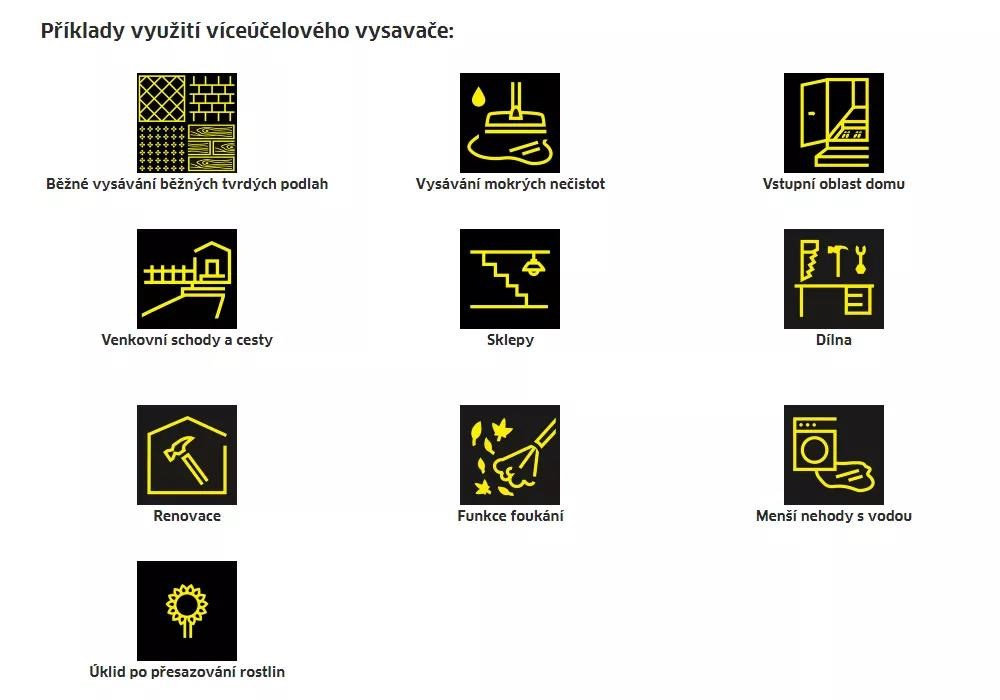 - Nabízí možnost nasazení nejrůznějších hubic přímo na sací hadici.