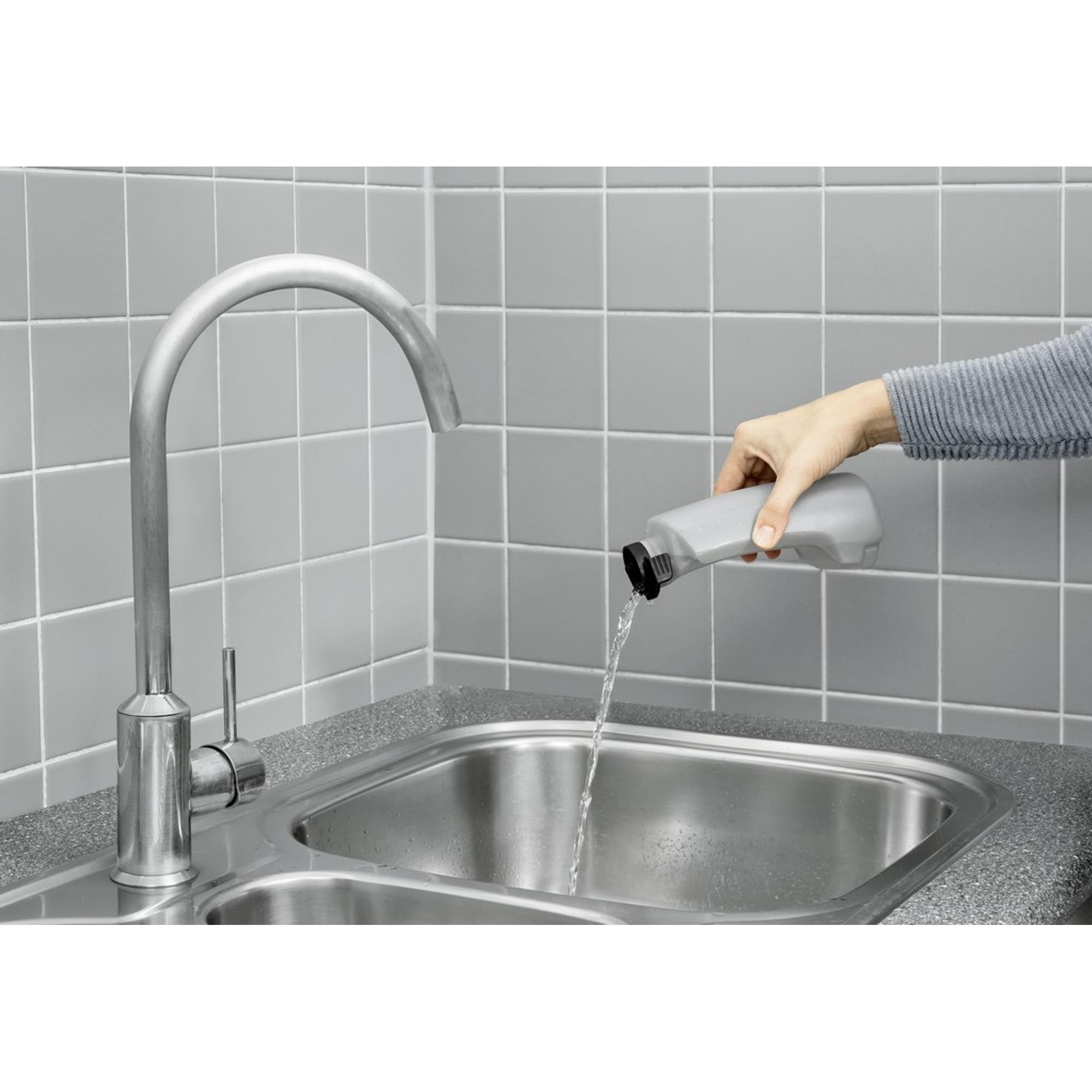 - Čistící přípravek rozředíme čistou vodou v odpovídajícím poměru