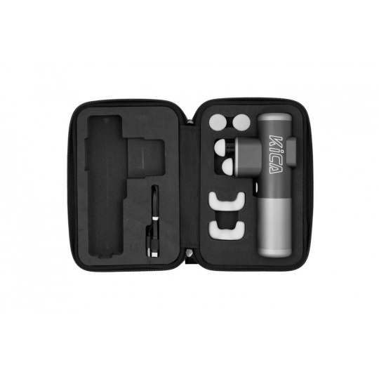 KiCA Pro masážní pistole, dotykový displej, 3 režimy, 3 hlavice, dvojí penetrace, z leteckého hliníku, šedá