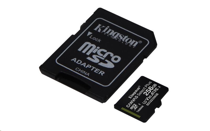 Kingston MicroSDXC karta 256GB Canvas Select Plus 100R A1 C10 Card + SD adaptér