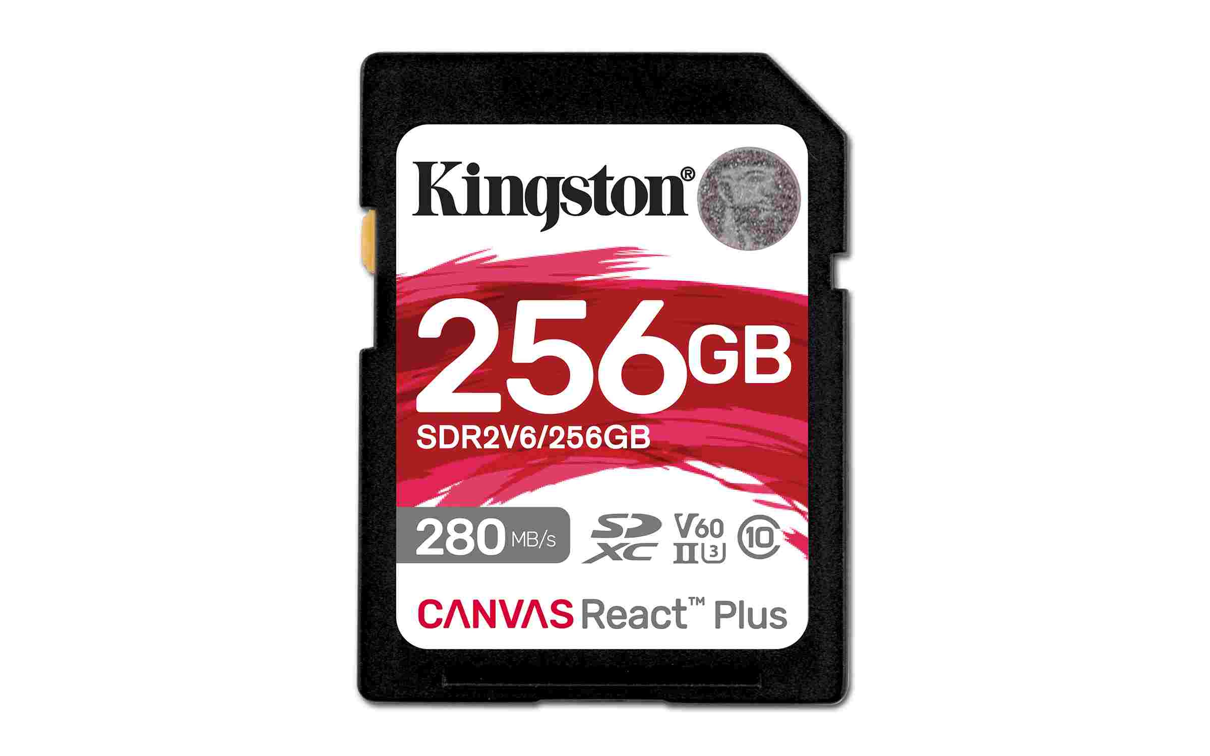 SD karta Kingston Canvas React Plus V60 poskytuje působivý výkon pro kamery UHS-II pro zachycení 4K videa. Disponuje rychlostními třídami U3 a V60 s přenosovými rychlostmi až 280 MB/s a kapacitou až 1 TB.