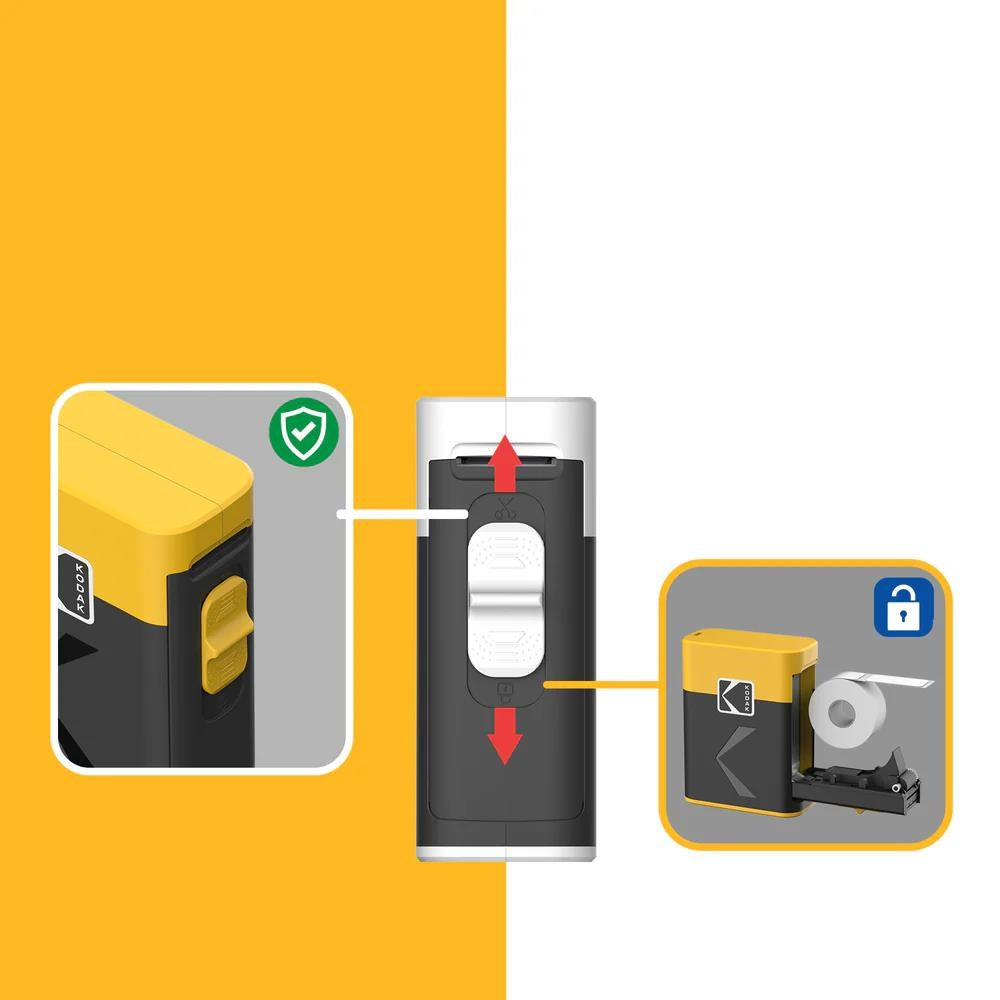 KODAK Label Era nabízí kompaktní a přenosný design se skrytým řezacím břitem a etiketami bez obsahu BPA, což zajišťuje bezpečné použití – i pro děti. Snadno a spolehlivě označíte předměty doma, ve škole nebo v kanceláři.