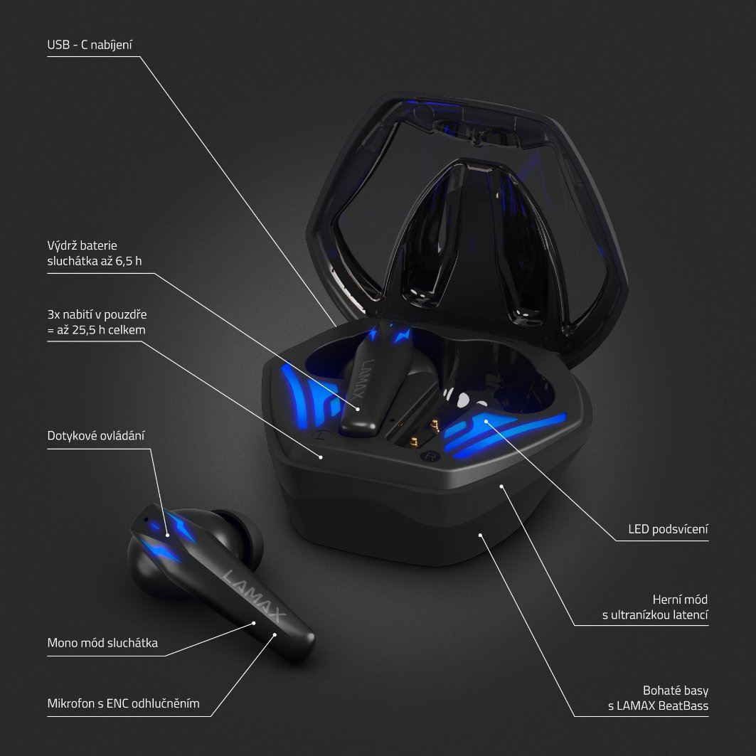 S vyladěným zvukem LAMAX Heroes Ninja1 a minimální latencí si užiješ nejen hry, ale i filmy nebo tvůj playlist!