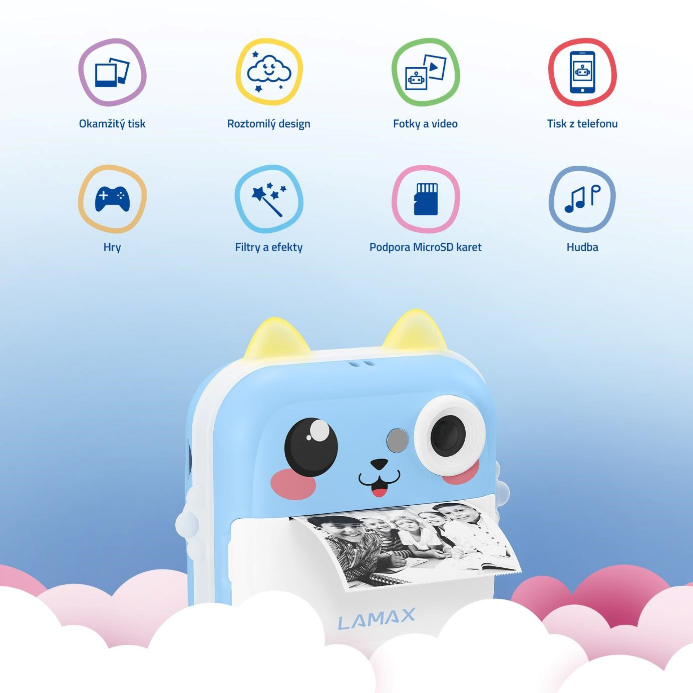 Objevte kouzlo zachycených momentů, které si vaše děti vytisknou během pár vteřin. Dětský fotoaparát LAMAX InstaKid2 Plus s okamžitým tiskem není jen roztomilý na pohled. S českou aplikací, vysokým rozlišením fotek i videa a sadou kreativních nástrojů se stává zábavným parťákem na výlety i do pokojíčku. Děti si s ním nejen vyfotí své zážitky, ale hned si je i vytisknou,vybarví přiloženými fixami a nalepí do deníku nebo kamkoliv budou chtít. Pomocí aplikace pak zvládnou tisknout fotky a poznámky z telefonu, skenovat texty ze sešitů, překlápět snímky do animovaného stylu nebo si s pomocí AI vybarvit černobílé obrázky. A když si od focení chtějí na chvíli odpočinout? O zábavu se postarají i vestavěné hry.LAMAX InstaKid2 Plus fotoaparát podporuje kreativitu, samostatnost i hravé učení a kdo ví, třeba právě tento foťáček odstartuje kariéru vašeho dítěte ve světe fotografií a filmu.