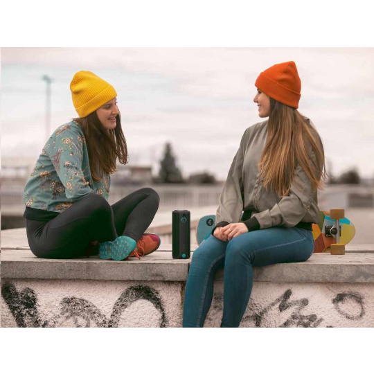 Certifikace IP67 znamená, že reproduktor v pohodě vydrží stříkající vodu, prach nebo sníh. Nevadí mu ani hrubší zacházení, tak ho ber všude s sebou.