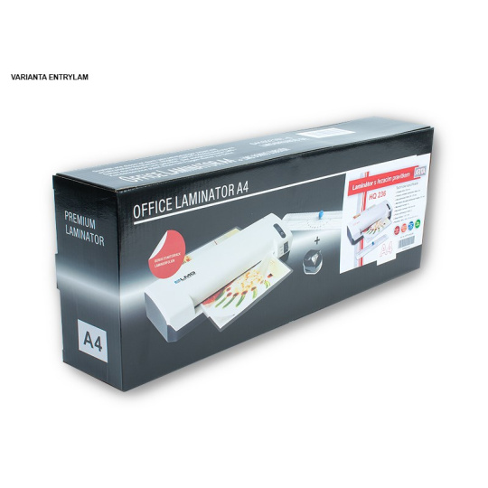 Jednoduchý laminátor do formátu A4, vhodný pro laminování dokumentů v menší kanceláři nebo pro domácí použití. Jeho výhodami jsou jednoduchá obsluha, skladnost a nahřátí stroje do pracovní teploty již za 1,5 minuty. Laminátor umožňuje i studenou laminaci a obsahuje funkci Release, zabraňující uvíznutí dokumentu mezi válci. Dále je ve spodní části laminátoru integrována jednoduchá řezačka na občasné oříznutí papíru i zalaminovaného dokumentu. - Maximální vstupní šíře - 230 mm - Rychlost laminace je 400mm/min.