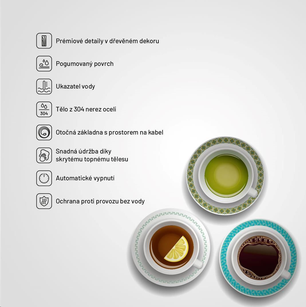 Konvice je vybavena pojistkou proti přehřátí i vaření bez vody.
