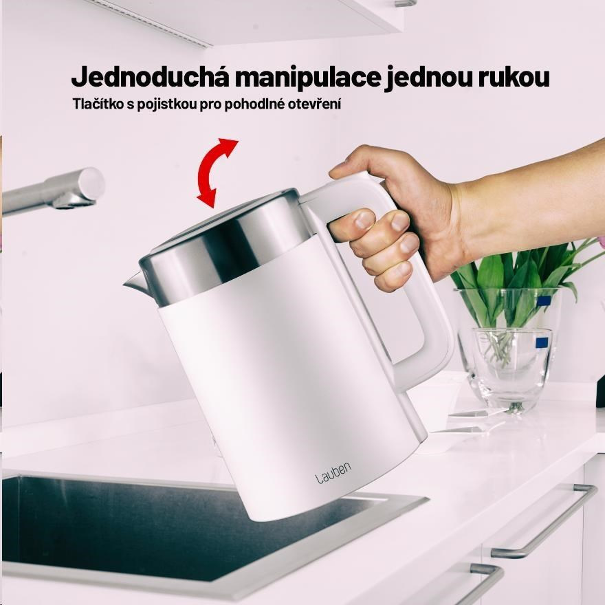 Poradí si s čajem, kávou i kojeneckou výživouLauben Electric Kettle EK17WS je designová rychlovarná konvice s nastavitelnou teplotou ohřevu vody a Keep Warm funkcí. Možnost nastavení teploty vody v kuchyni jistě oceníte. Potřebujete zalít zelený čaj? Už nikdy nemusíte čekat, až voda vychladne, stačí si preferovanou teplotu zvolit na přehledném LCD displeji.
