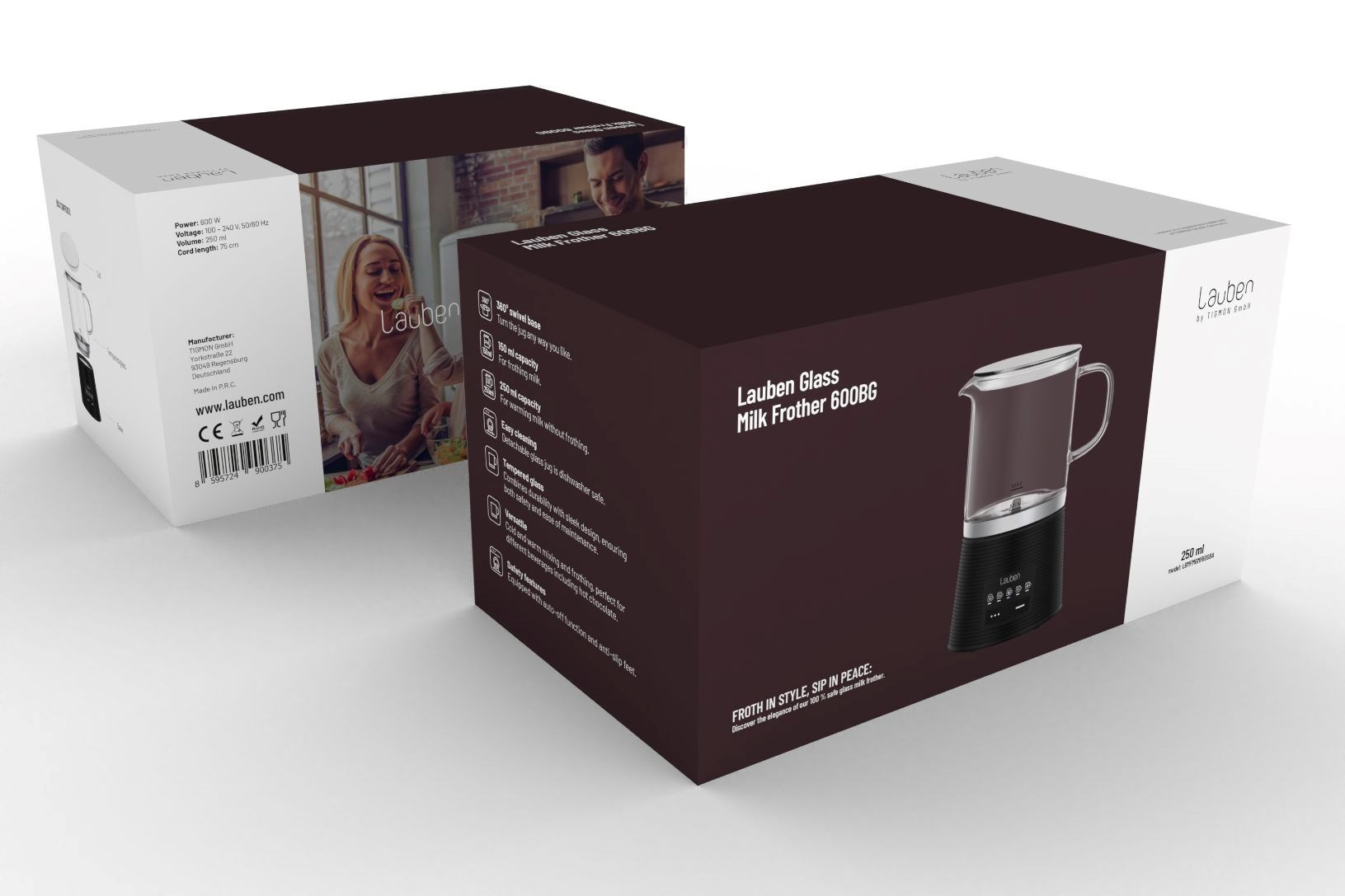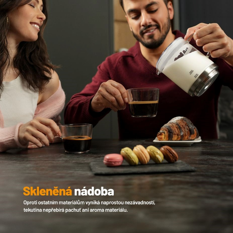 Milovníci nápojů s dokonale našlehaným mlékem si nyní díky napěňovači Lauben Glass Milk Frother 600BG vychutnají i v domácím prostředí či v práci mléčnou pěnu jako od baristy. Skleněná nádoba umožňuje sledovat proces přípravy, je zdraví nezávadná a snadná na údržbu, stačí omýt nebo vložit do myčky. Údržbu usnadňuje i odnímatelné míchátko. Pro lepší manipulaci má základna schopnost otáčet se o 360°. Pomocí variace módů přístroj zvládá teplé i studené napěňování či míchání a speciální mód vykouzlí horkou čokoládu. Svými baristickými schopnostmi nevyrušíte spící rodinu ani kolegy v kanceláři, neboť provoz napěňovače je velmi tichý. Tento praktický designový kousek ohřeje 250 ml a napění 150 ml mléka. Protiskluzové nožičky drží přístroj na místě, k bezpečnosti přispívá i funkce automatického vypnutí.