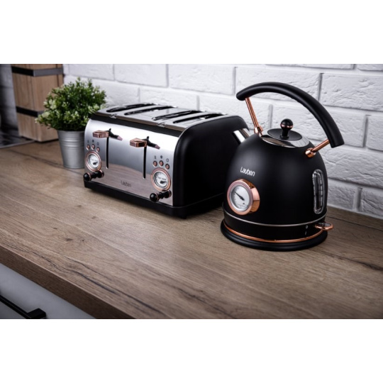 Luxusní design Lauben 4 Slice Toaster 1500BC z nerezové oceli tvoří dokonalý pár s rychlovarnou konvicí Lauben Kettle 17BC s ukazatelem teploty. Tento snídaňový set se stane ozdobou vaší kuchyně, a aby dojem nic nerušilo, překážející kabel lze uschovat do dna základny, kde je pro něj vytvořen prostor.