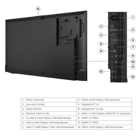 | USB Port | 4x USB-A (USB 5Gbps), 1x USB-C® (USB 5Gbps, PD 15W), 1x USB-B (USB 5Gbps, USB upstream), 1x USB-C (USB 10Gbps, 96W PD3.1, USB upstream) |