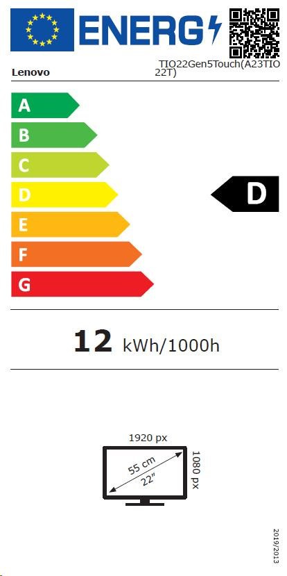 LENOVO LCD TIO 22 Gen5 - 21.5",IPS,mat,16:9,1920x1080 touch,178/178,4/6/16ms,250cd/m2,1000:1,DP,USB,VESA,Pivot,repro,cam