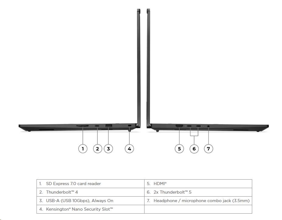Typ zařízení:Notebook; Použití:Kancelářský; Podpora AI; Operační systém:Windows 11 Pro; Řada procesorů:Intel Core Ultra 7; Model grafické karty:NVIDIA RTX PRO 1000; Velikost paměti RAM (GB):32; Rozlišení displeje:1920x1200; Formát obrazovky:16:10; Typ disku:SSD; SSD Kapacita (GB):1000; Rozhraní:USB 3.2 Gen 2, SD karta, HDMI, 3.5mm Jack, Thunderbolt.