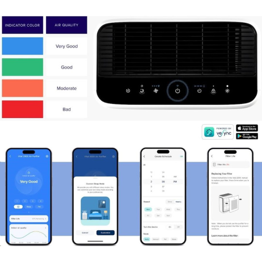 Chcete mít doma čistý vzduch jako prevenci před onemocněním horních cest dýchacích nebo jste alergik či astmatik? Chytrá čistička Levoit Vital 200S PRO díky vysoce kvalitní 3 vrstvé filtraci s filtrem HEPA H13 a omývatelným předfiltrem odstraní až 99,99% škodlivých látek a nečistot, které by jste jinak dýchali. Čistička Levoit Vital 200S PRO je certifikována pro alergiky a disponuje výkonem 416 m3/h CAD při 50W. Díky energeticky nenáročnému provozu získala ocenění Energy Star. Ovládaní čističky vzduchu je vskutku jednoduché přímo na displeji nebo se nabízí ovládání přes aplikaci na chytrých zařízeních Android nebo Apple (iOS). Levoit Vital 200S PRO je vybaven senzorem snímaní kvality vzduchu na něhož základě umí sám chytře upravovat výkon čištění.