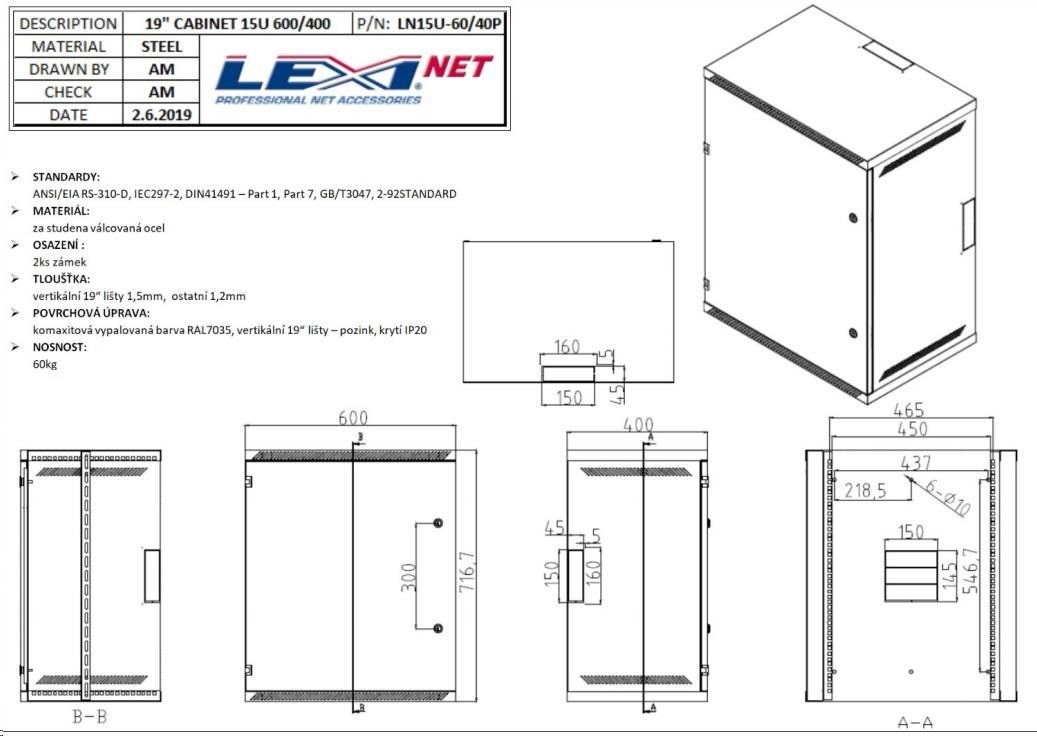 LEXI-Net 19" nástěnný rozvaděč 9U