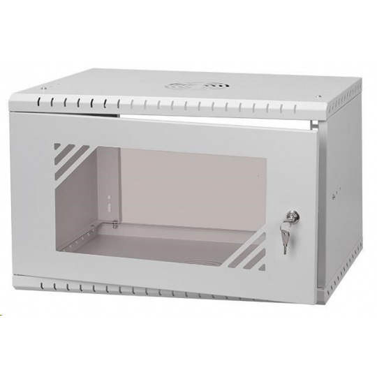 LEXI-Net 19" nástěnný rozvaděč Basic 6U 520x350, skleněné dveře, bez zad, rozložený, šedý