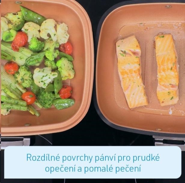 Livington Black Doubletta je inovativním vylepšením milion krát prodaného kuchyňského hitu Doubletta. V čem spočívá tajemství nové Livington Black Doubletty?Čtverečný tvar Vám zajistí dostatek místa při vaření a umožní Vám přípravu dvou pokrmů najednou. Livington Black Doubletta má extrémně odolné dno, které ukládá teplo na obou stranách, pro ještě lepší výsledky. Díky propracované cirkulaci se teplo uvnitř pánve rozloží kolem Vašeho jídla rovnoměrně, například při šetrném, pomalém dušení, či vaření v páře, nebo také při grilování. Povrch pánve je potažen nepřilnavou vrstvou, díky níž se nic nepřilepí, ani nepřipálí. Flexibilní, silikonové těsnění a ergonomická ručka s geniálním magnetickým uzávěrem drží pánev pevně uzavřenou. Tím je zaručeno perfektní vařní prostředí. Nadbytečná pára se vypaří otvory k tomu určenými. Jinak, než u běžných varých systémech, můžete Livington Black Doublettu kdykoliv během přípravy jídel otevřít: například když chcete jídlo dochutit kořením, podlít vodou, nebo prostě jenom ochutnat! Takto budete vařit mnohem šetrněji, pod nišším tlakem. Vaše jídla budou chutnat intenzivněji a na jejich úžasnou chuť určitě nezapomenete! A navzdory všemu vaříte pomocí Livington Black Doubletta mnohem rychleji, než s kteroukoliv jinou pánví.