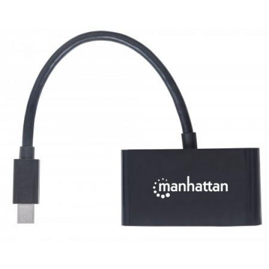 The Manhattan 2-in-1 4K Mini DisplayPort Adapter establishes a fast, simple and convenient link between Mini DisplayPort-equipped sources and existing 4k HDMI and 1080p VGA displays. The adapter is easy and quick to install and requires no complicated configuration or setup. It offers a passive, compact and integrated solution that eliminates unnecessary cables, tangles and clutter to keep installations and workspaces neat and orderly.