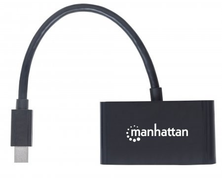 The Manhattan 2-in-1 4K Mini DisplayPort Adapter establishes a fast, simple and convenient link between Mini DisplayPort-equipped sources and existing 4k HDMI and 1080p VGA displays. The adapter is easy and quick to install and requires no complicated configuration or setup. It offers a passive, compact and integrated solution that eliminates unnecessary cables, tangles and clutter to keep installations and workspaces neat and orderly.