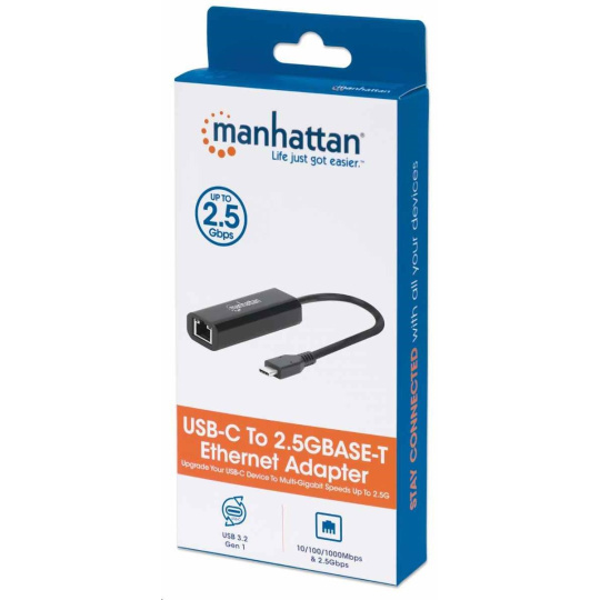 Manhattan adaptér USB-C na 2.5GBASE-T Ethernet, USB 3.2 Gen 1; 10/100/1000 Mbps & 2.5 Gbps, černá