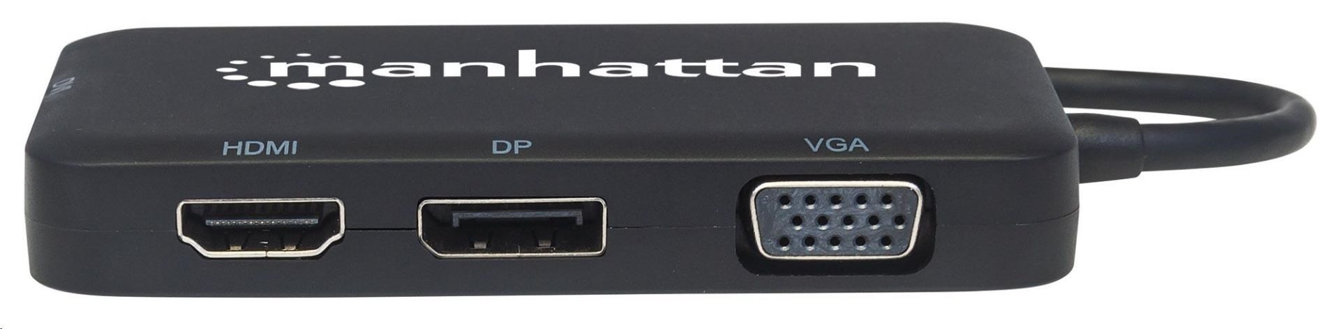 MANHATTAN Dokovací stanice USB-C 4v1, 1xDP, 1xHDMI, 1xVGA, 1xDVI