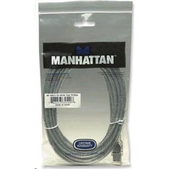 MANHATTAN Kabel USB 2.0 A-B propojovací 5m (stříbrný)