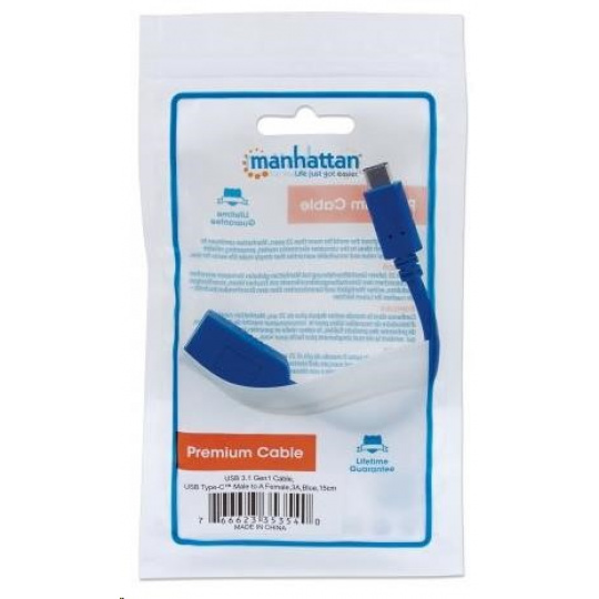 MANHATTAN Kabel USB 2.0 A - USB 3.1 C (F/M), modrý