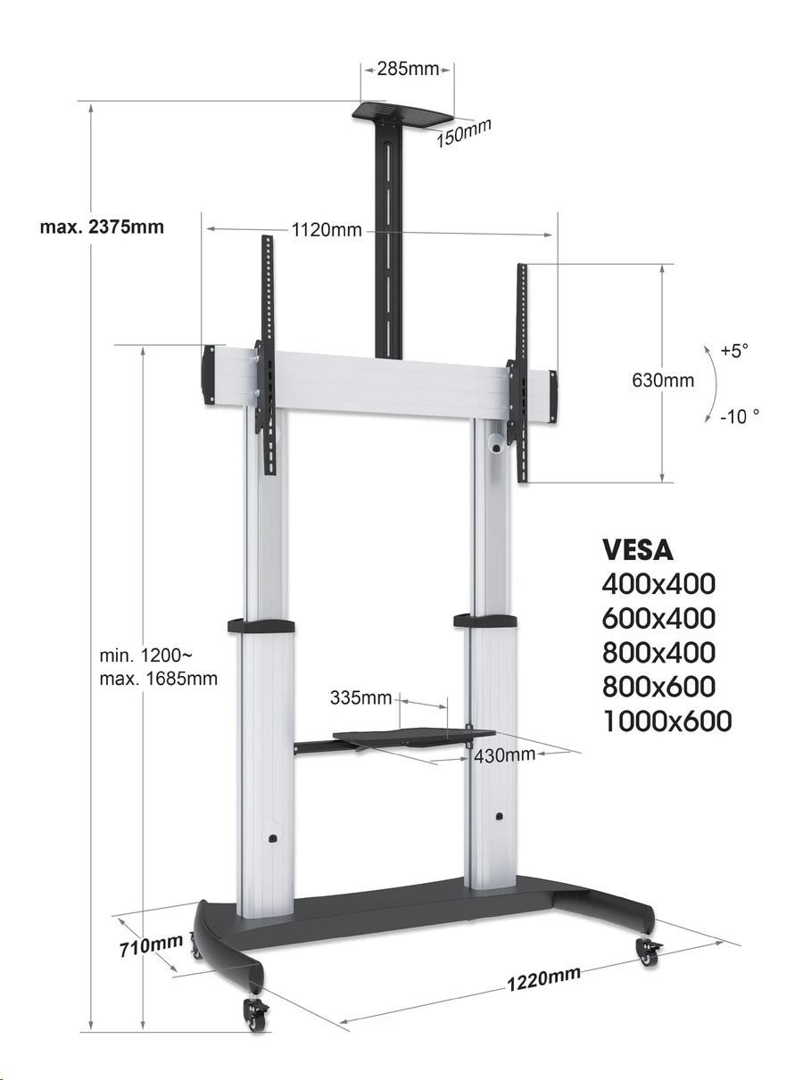 - Multifunctional TV cart/trolley for one 60" to 100" TV up to 100 kg (220 lbs.)