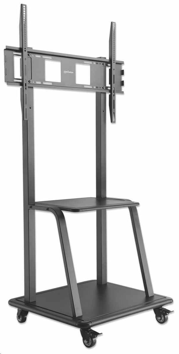 Overcome odd floor plans, annoying glare and restrictive furniture arrangements that can diminish flat-panel TV experiences. The Manhattan Universal Heavy Duty TV Cart helps achieve optimal viewing angles from almost anywhere in the room. VESA-compliant and constructed of quality materials, this high-quality TV cart fits a range of display sizes and offers a secure above-the-floor installation.Ideal for residential, office, hospitality, classroom and conference room, digital signage and other commercial applications, the Manhattan Universal Heavy Duty TV Cart brings high-performance LCD or plasma TV enjoyment front and center.