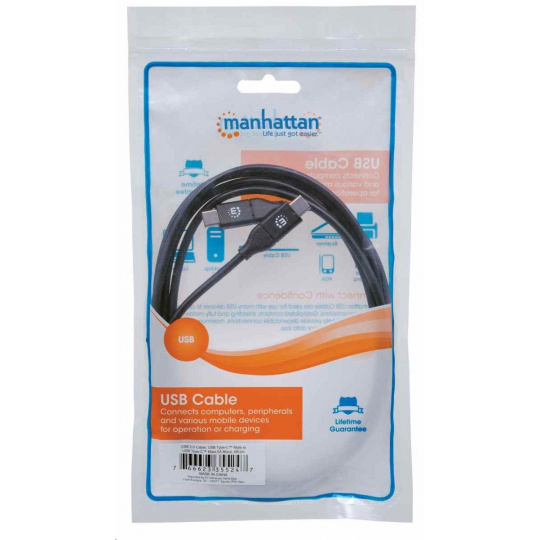 Manhattan USB-C kabel, USB 2.0, Male na Male, 480 Mbps, 5 A, 2m, černá