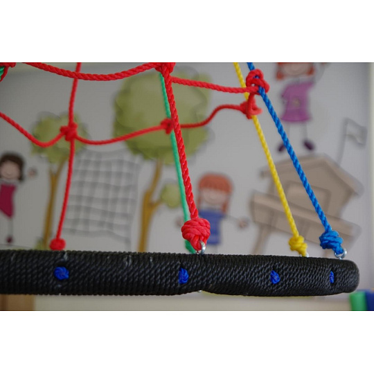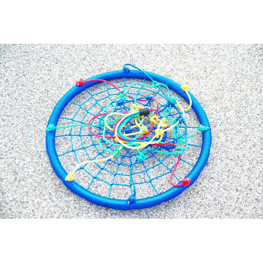 Závěsná houpačka ve tvaru kruhu je svým průměrem 100 cm a nosností až 150 kg ideální nejen pro děti, ale i dospělé. Velká sedací plocha houpačky nabízí volnost při houpání i dostatečný prostor pro lenošení. Houpačka je zavěšena na 4 délkově nastavitelných lanech, která jsou zakončena kovovými kroužky pro zavěšení na nosnou konstrukci.